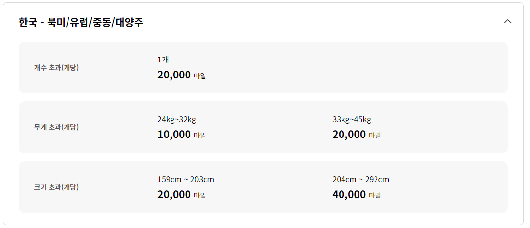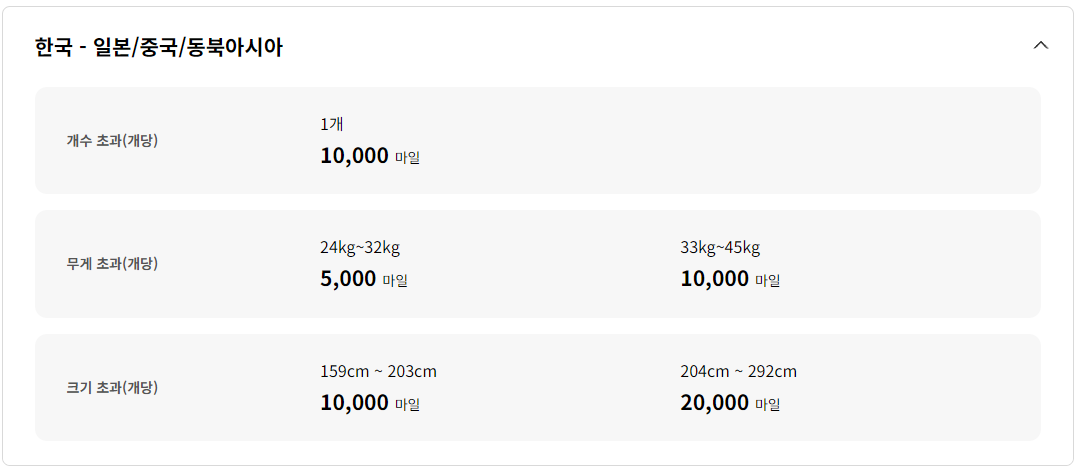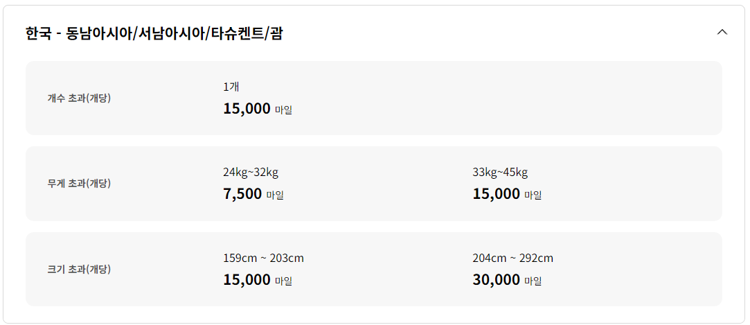 하지만 국제선 이용시는 사용 마일리지가 크기 때문에 웬만하면 규정 수화물에 맞춰서 가져가시는 것을 추천드립니다.