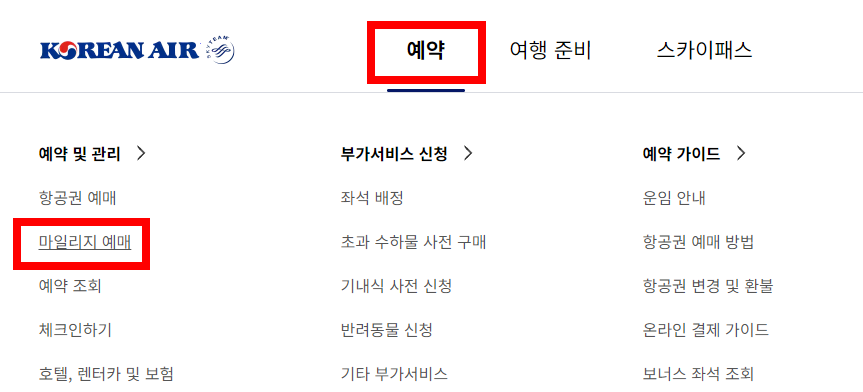 대한항공 마일리지 사용방법 1. 항공권 구매